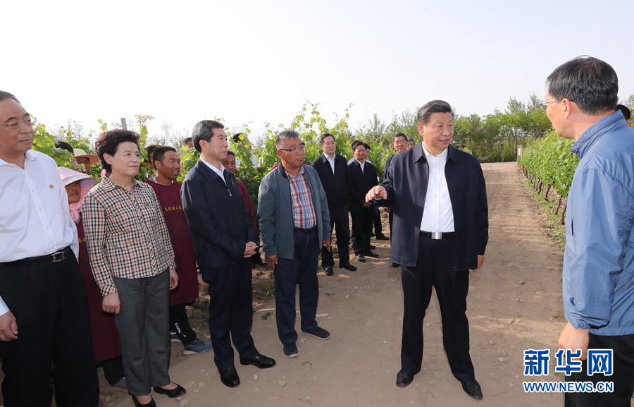 6月8日至10日,中共中央总书记、国家主席、中央军委主席习近平在宁夏考察。这是6月9日下午,习近平在银川市西夏区葡萄种植基地,同工人和技术人员交流。 新华社记者 鞠鹏 摄
