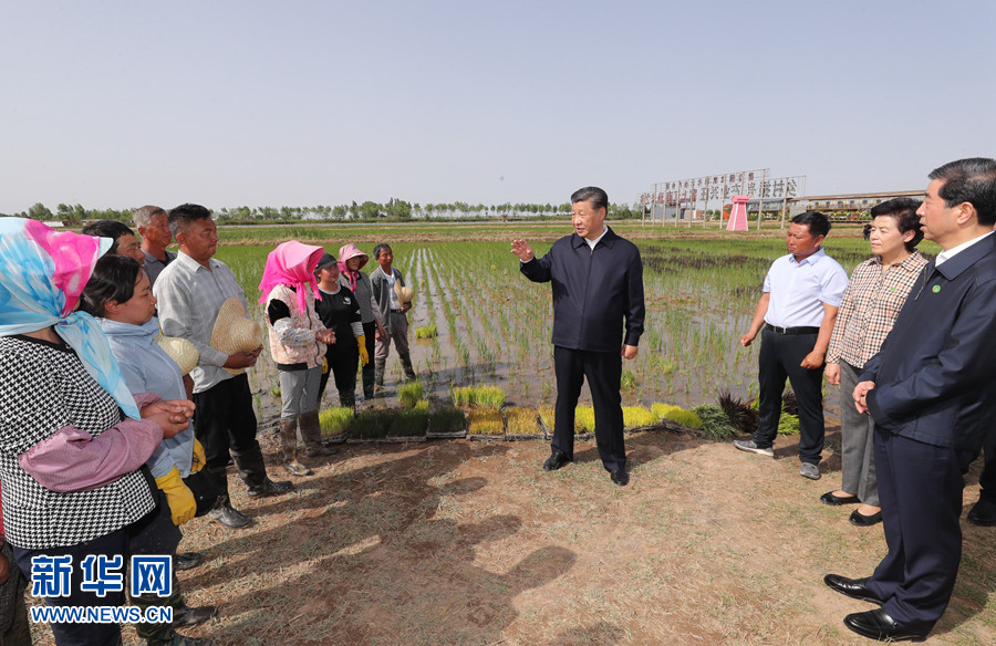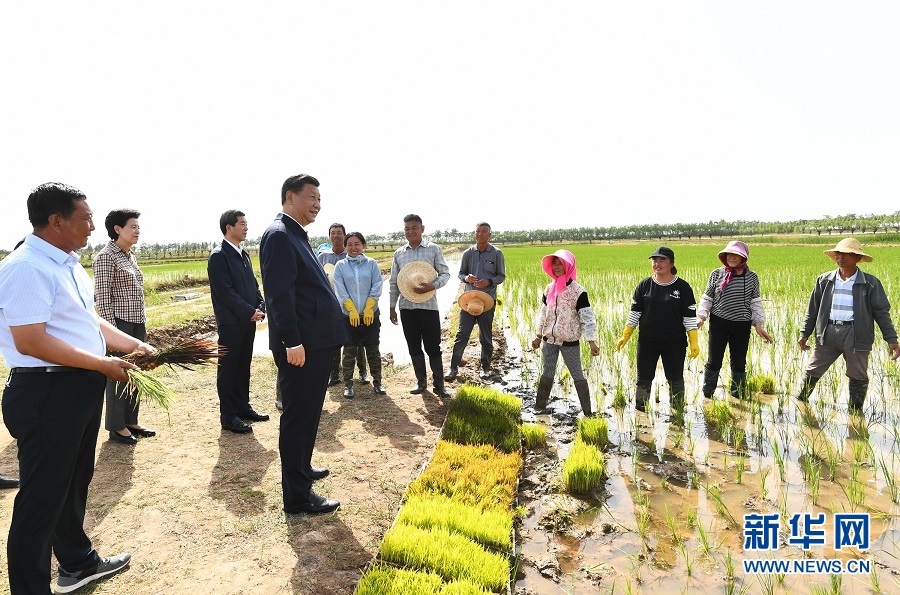 6月8日至10日,中共中央总书记、国家主席、中央军委主席习近平在宁夏考察。这是6月9日下午,习近平在银川市贺兰县稻渔空间乡村生态观光园,同正在劳作的村民亲切交谈。 新华社记者 鞠鹏 摄