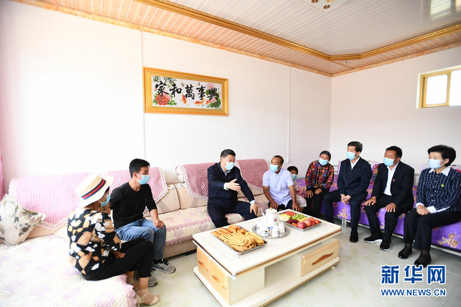 6月8日至10日,中共中央总书记、国家主席、中央军委主席习近平在宁夏考察。这是6月8日下午,习近平在吴忠市红寺堡区红寺堡镇弘德村,同回族村民刘克瑞一家亲切交流。 新华社记者 谢环驰 摄
