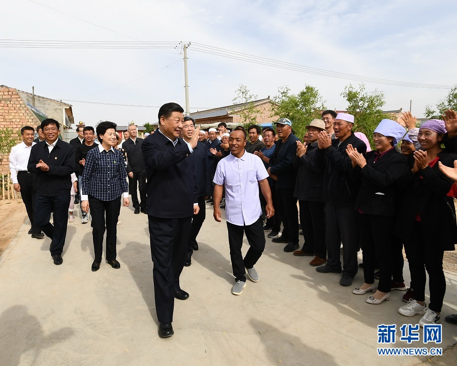 6月8日至10日,中共中央总书记、国家主席、中央军委主席习近平在宁夏考察。这是6月8日下午,习近平在吴忠市红寺堡区红寺堡镇弘德村看望移民搬迁群众,向村民们挥手致意。 新华社记者 谢环驰 摄