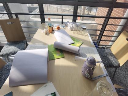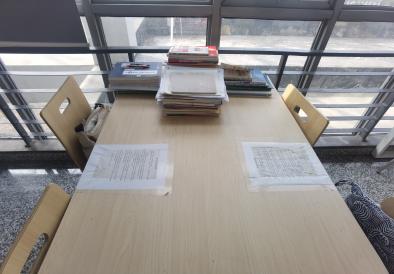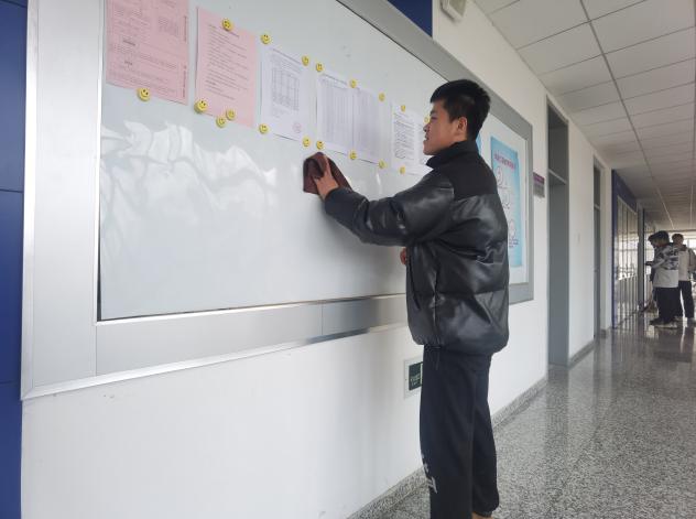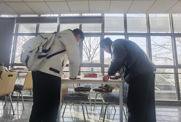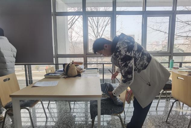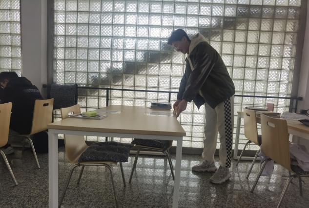 支部党员在化工与材料学院办公楼内整理桌椅