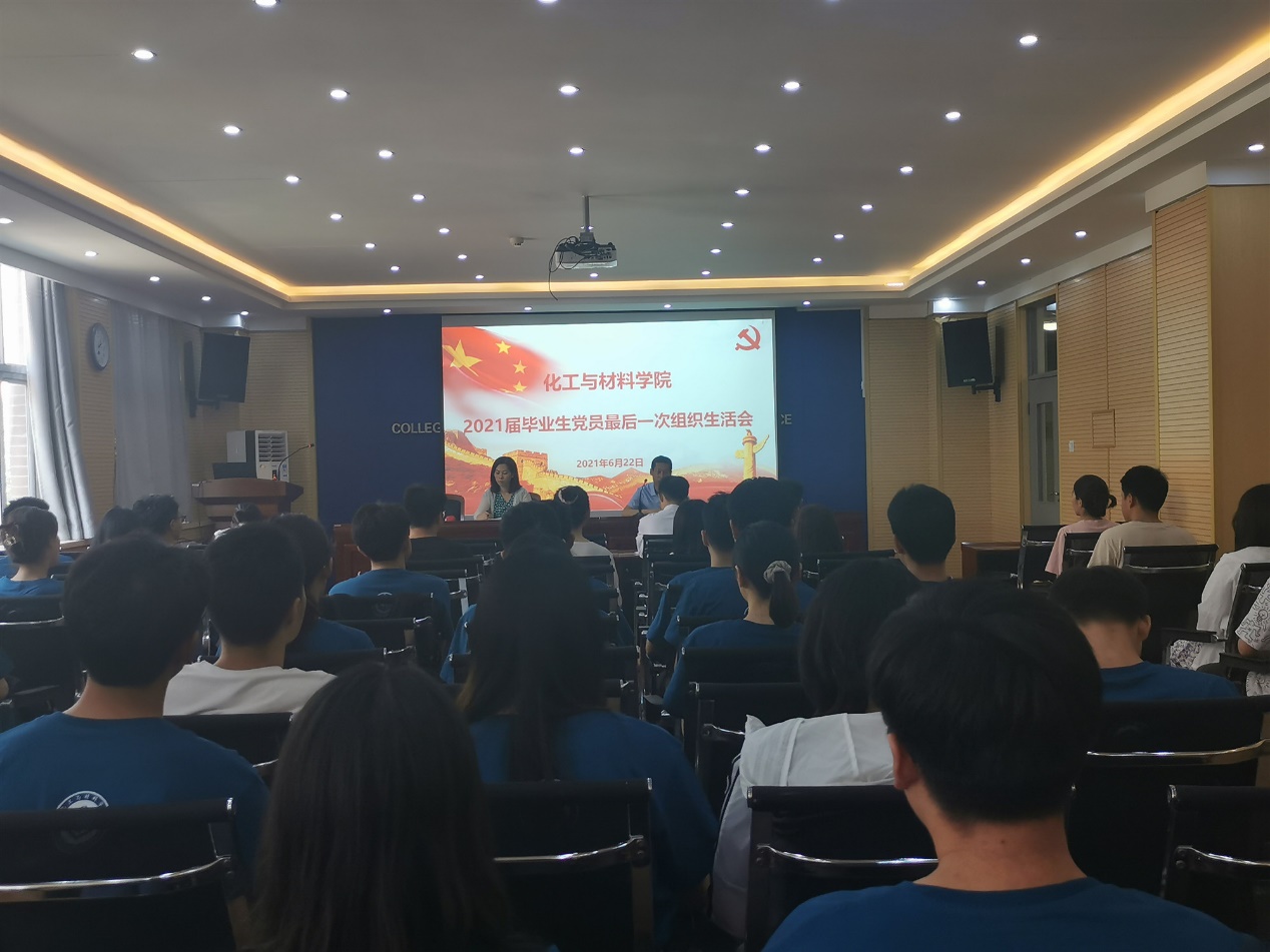 为加强毕业生党员理想信念教育,强化毕业生党员责任担当意识和廉洁从业意识,充分发挥毕业生党员的先锋模范带头作用,2021年6月22日14:00,化工与材料学院在滨海中校区8号楼B203会议室开展毕业生党员最后一次党组织生活会。学院党委书记崔永岩、组织员、毕业生辅导员以及2021届毕业生党员参会,学院党委副书记刘少华主持会议。