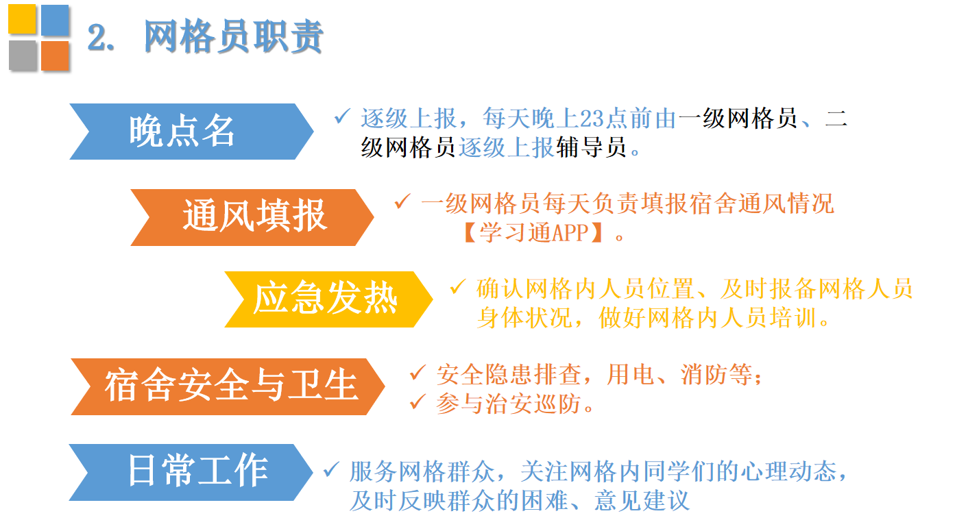 会议的最后,崔书记指出疫情防控时期宿舍管理的重要性并对网格员提出三点要求。一、要学习好学校相关规章制度及管理办法;二、作为网格员要有荣誉感、自豪感,更要有责任心,工作中从整体考虑;三、在日常工作外,还要努力提高自我修养,全面发展。