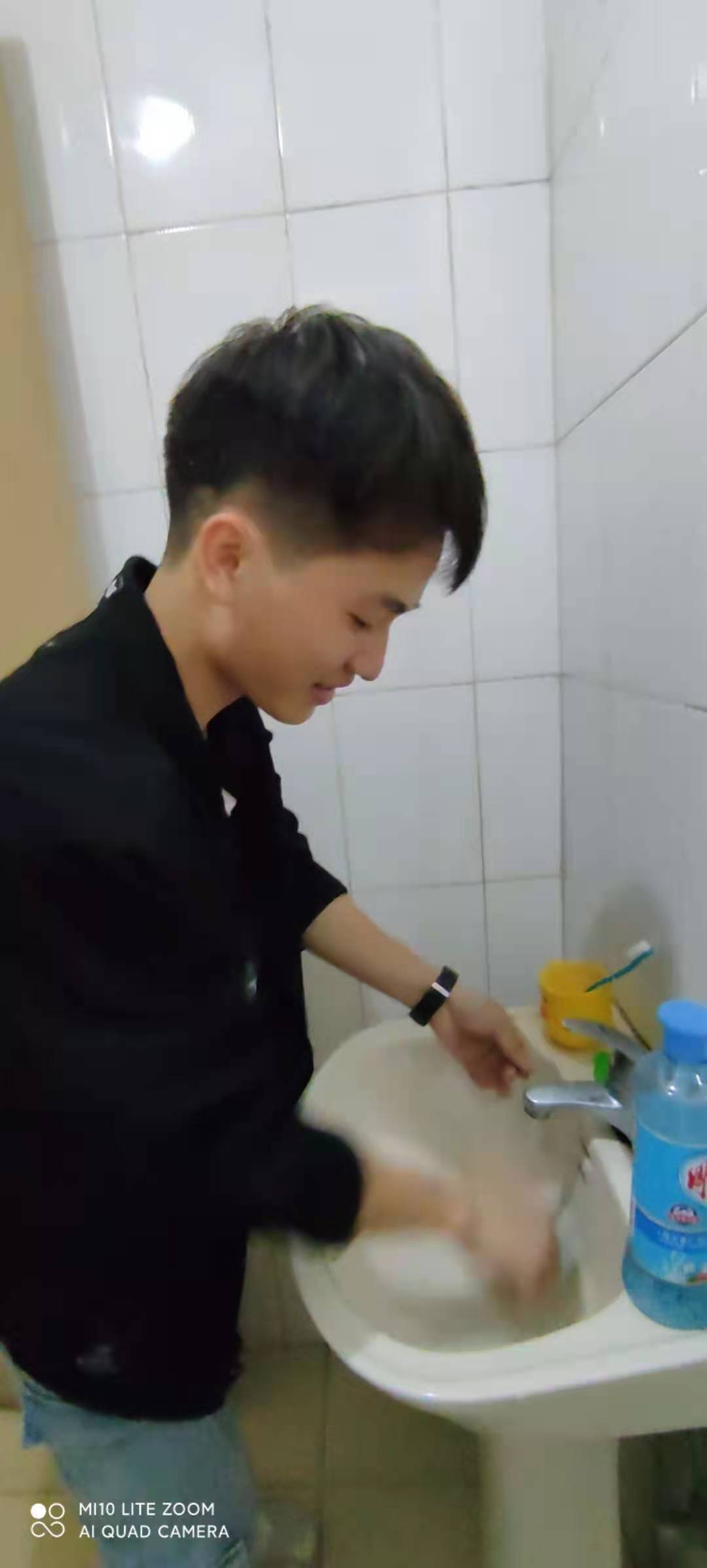 各年级学生返家后主动担负起家庭劳动义务,2017级的张冬、张引芹、何婷等同学主动劳动浇花、清洁卫生、做饭等。2018级王海洋返乡后积极投身家庭劳作,跟随家人一起到田间采茶并为家人准备可口饭菜(图3-4),劳动后他感叹道“虽然劳动很辛苦,但精神却很富裕,劳动的所感所悟让我终身受益”。2019级杨晓悦独自亲手为家人做了一桌可口饭菜(图1-2),并谈到“生活所需可以凭借自己的双手的,我们在家需要做力所能及的事,在岗位则需要恪尽职守,热爱劳动,以劳动为光荣。”2020级韦荔深充分利用假期时间劳作,洗衣服、打扫洗手间和归置家务等(图5-6),忙忙碌碌一整天之后他深有感悟“虽然感觉挺累的,但是心里成就感和幸福感满满的”。