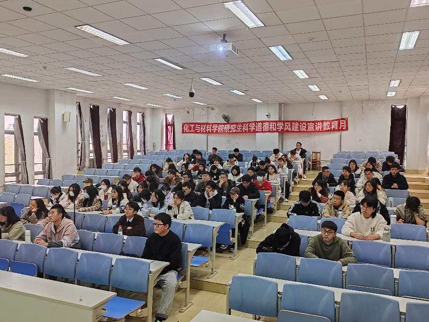 为深入贯彻落实习近平总书记关于学风建设和科研诚信建设工作以及研究生教育工作重要指示精神、落实立德树人根本任务、引导广大师生弘扬科学家精神、培养优良学风、营造良好科研氛围,化工与材料学院于11月21日下午在泰达9-17阶梯开展“传承盐业黄埔精神,弘扬优良校风学风”主题教育活动。本次活动特别邀请到化工与材料学院工会主席、博士生导师周桓教授作讲座,2023级全体研究生参与。