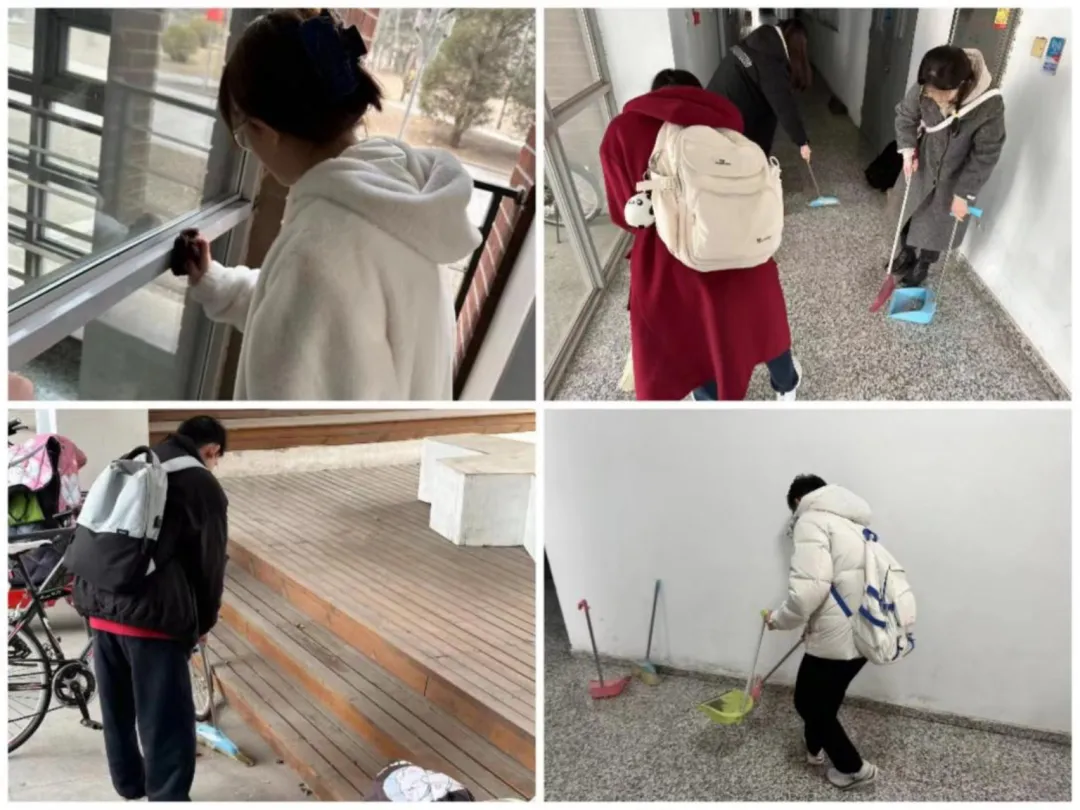 2024年3月10日上午11点,支部全体党员在化工与材料学院8号楼A区门前集合,手持扫帚、拖把、抹布等清洁工具,有组织、有秩序的开展清扫活动。党员同学们一丝不苟地清扫每一个角落,确保地面、墙壁等地方干净整洁,为老师、同学们提供干净整洁的校园环境献出一份力。