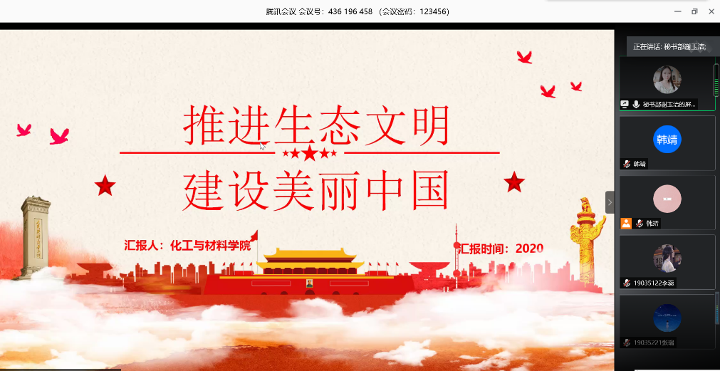 2020年12月1日20:30分,化工与材料学院科技创新协会召开 “推进生态文明建设美丽中国”宣讲会,化工与材料学院全体学生参加了本次活动。